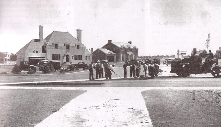(Completing the paving in front of 6 Crestmoor Drive and 8 Crestmoor Drive on July 10, 1937. Reprinted in Crestmoor Park Heritage by Alice Millett Bakemeier.)