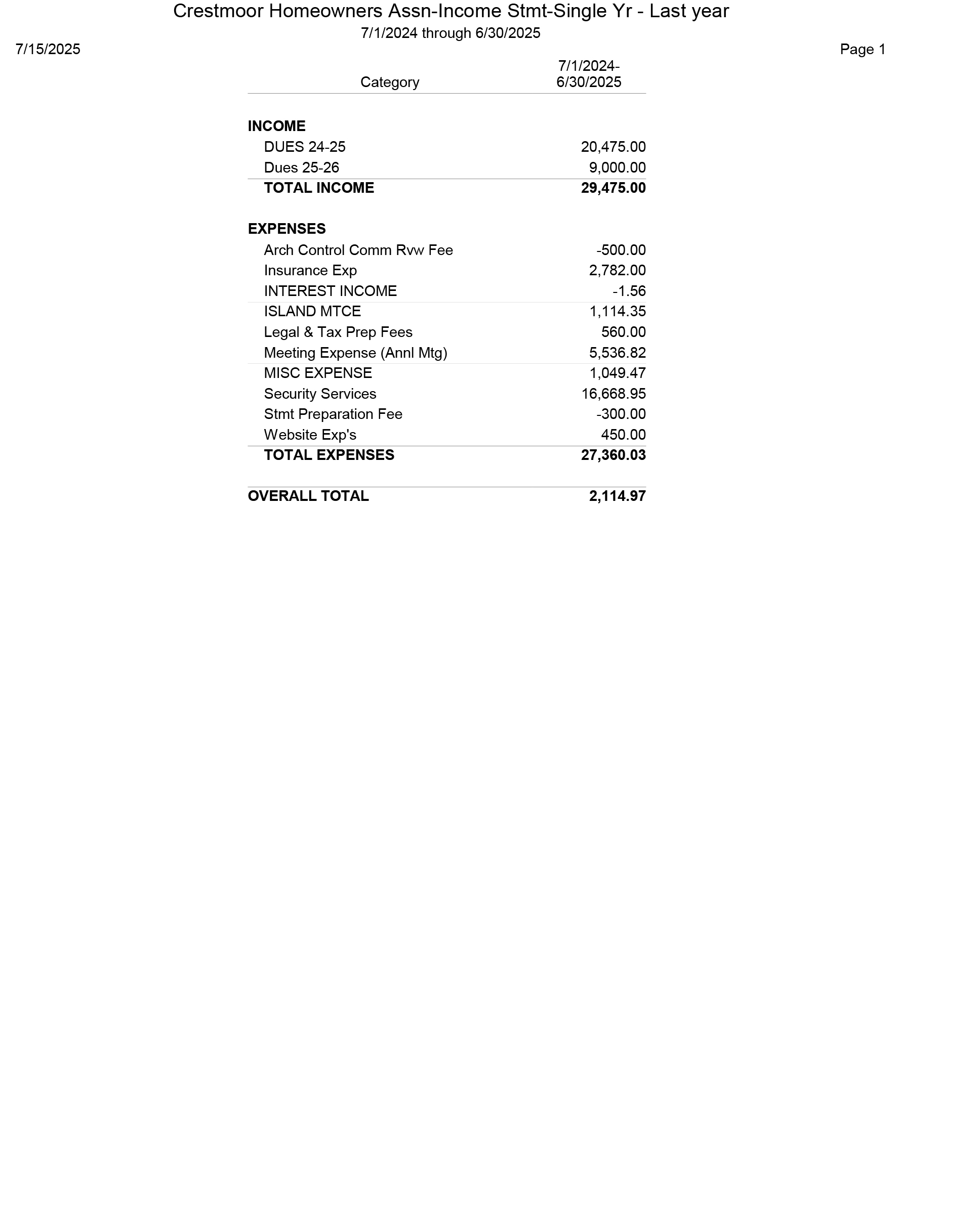 Annual Dues Notices and Financial Reports