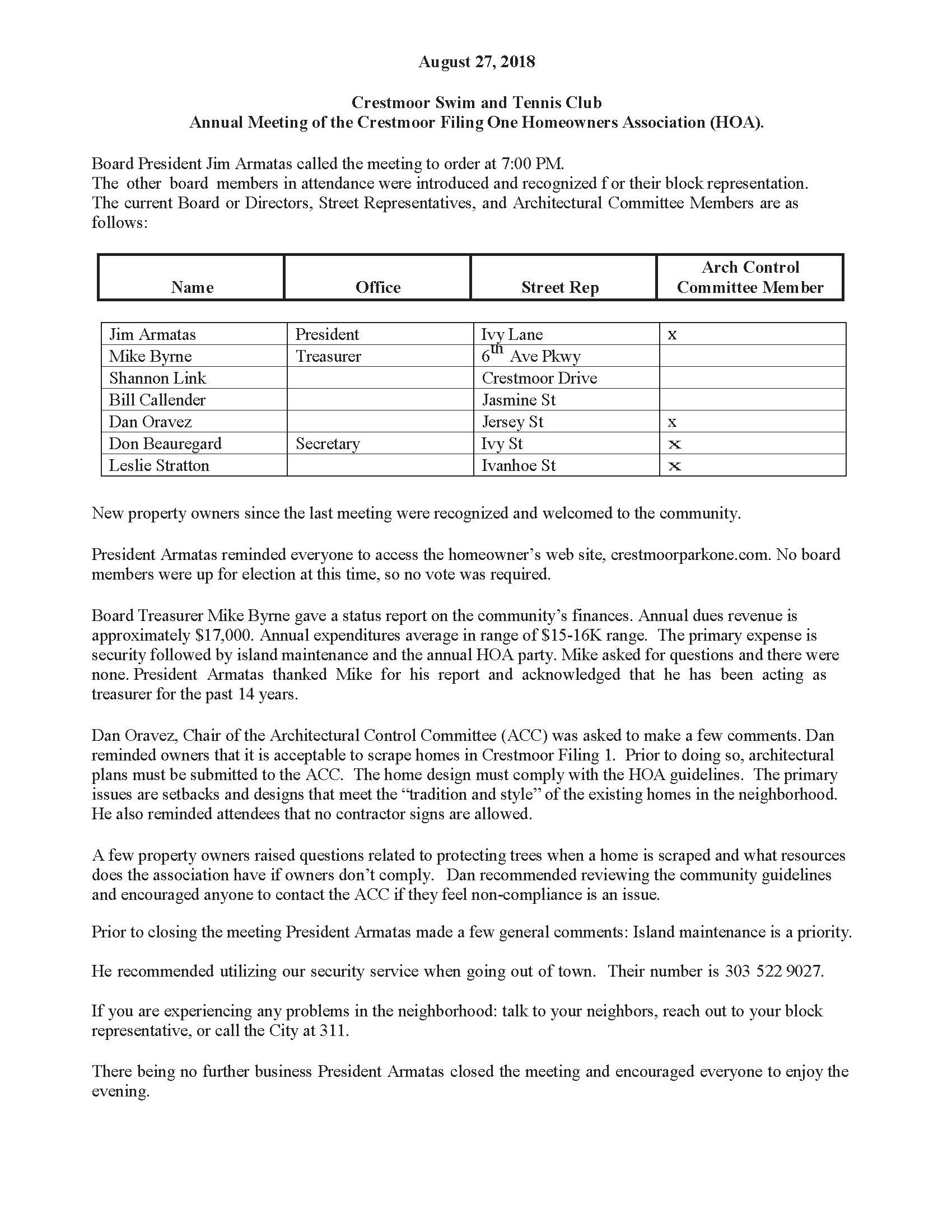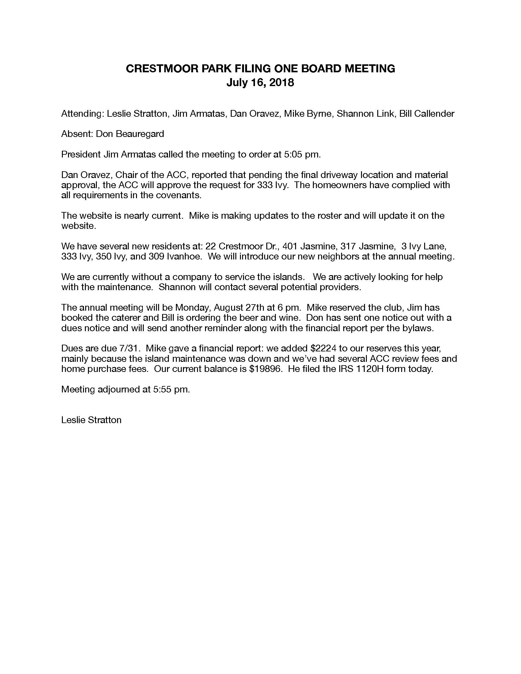 2018 Meeting Minutes